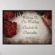 Um cartaz de "Bem-vindos ao Nosso Casamento" com uma foto temática de flores de outono. Com papel de escrita desbotado e riscado e uma caneta em cima com algumas flores vermelhas bonitas e folhas verdes colocadas em volta das bordas. Um design de casamento para personalizar com o nome da noiva e do noivo e a data do casamento.