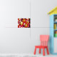 Um vibrante design vermelho, amarelo, preto e branco pop de petúnias.