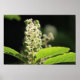 As belas flores brancas da planta Phytolacca também conhecidas como pokeweed, iluminadas de trás pelo sol da manhã. Uma bela impressão para decorar sua casa.