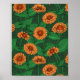 Poster Flores de Zinnia laranja, folhas verdes em verde e