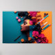 Bela poster com uma mulher de pele escura cercada por flores e cosméticos, celebrando beleza e elegância. O design vibrante captura graça e força, fazer-o como uma adição perfeita a qualquer espaço de casa, escritório ou amante de beleza. Ideal para aqueles que apreciam diferentes representações de beleza. Disponível em vários tamanhos e opções personalizáveis.