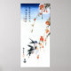 Utagawa Hiroshige (1797 - 12 de outubro de 1858) era um artista ukiyo-e japonês, e um dos últimos artistas excelentes dessa tradição. A lenda diz que Hiroshige decidiu se tornar um artista ukiyo-e quando viu os impressões de seu contemporâneo, Hokusai. (Hokusai publicou algumas de suas maiores impressões, como Trinta e seis visualizações do Monte Fuji, em 1832 — o ano em que Hiroshige se dedicou ao cheio da sua arte.) Desde então até a morte de Hokusai em 1849, suas obras paisagísticas competiam pelos mesmos clientes. Flying Swallow under Peach Blossoms in the Moonlight (Gekka Tsuki in Tsubame to Momo no Hana), c.1833. Publicador: Jakurindo. Vintage retro belo e legal artista, elegante e original criativo, original e único, ukiyoe japonês ou ukiyo e animal floral, pássaro floral e impressão de madeira fina e floral para decor moderno.