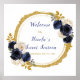 Poster Flores Elegantes marinhos Azuis e Douradas Doce De