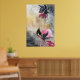 Flores de Cor Harmonica Cor-de-Água Rosa Negra Deixa Abstrato de pintura Poster.