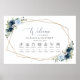 Adicione um toque pessoal à sua celebração de casamento com estes itens de na moda e festa memoráveis! Design apresenta flores marinhos e azuis de cor d'água, tela verde e estrutura dourada sobre fundo branco.
