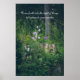 Poster de fotografia com flores roxas (Campanula) e uma floresta de pinheiros encantadora. Como parte da decoração de uma casa, pode contribuir significativamente para melhorar a atmosfera e a estética do espaço vivo. Um sonho de amante da natureza, esta poster é mais do que uma decoração — é uma fuga para o excelente ao ar livre. Você pode apagar o texto "Venha à luz das coisas, deixe a natureza ser seu professor" (William Wordsworth) ou substituí-lo pela sua própria mensagem (clique em "Personalizar esta modelo"). Para mais modificações (estilo de fonte, cor de fonte, posição de texto), clique em "Editar design".