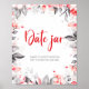 Design floral elegante com padrão de flores a aquarela em vermelho e cinza e tipografia de tendência. O texto pode ser facilmente personalizado para um único design único para seu dia especial