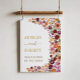 Esta placa de boas-vindas do casamento vai certamente iluminar o seu dia de casamento. Perfeito para casais que procuram misturar charme inspirado na natureza com sofisticação contemporânea, este design capta a essência do calor e do romance do outono. Use os campos de texto para personalizar o sinal com seu próprio texto e detalhes. Se quiser alterar o estilo da fonte, a cor ou o posicionamento do texto, basta clicar no botão "Personalizar Mais".