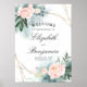 Pêonias cor-de-rosa e água verde sinal de boas-vindas ao casamento poster
