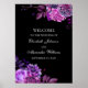 Poster Flores roxas de aquarela. Boas-vindas do casamento
