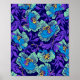 Poster com as flores design de matérias têxteis de William Morris, púrpura e azuis (1834-1896). Lindas flores decoram um pano de fundo roxo escuro. Um presente maravilhoso para entusiastas da arte vitoriana.