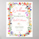 Flores selvagens brilhantes modernas, bridal, sinal de boas-vindas ao chá de panela boêmico. Apresentando flores botânicas de matizes cor-de-rosa, vermelha, verde e roxa inspiradas em flores silvestres e jardins rústicos de aquarelas com um verde sutil e uma tipografia moderna de matizes.