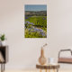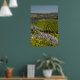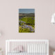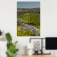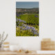 O bonito Impressão do Vineyard Verde e Flores Roxas apresenta uma fotografia paisagem cênica de campos de uva verde-colina com flores roxas no primeiro plano localizado no país do vinho de Napa Valley, Califórnia. Esta bela poster de natureza personalizada faz uma ideia única e ponderada de presente para uma pessoa que ama vinhas, vinhas ou vinho!