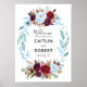 Sinal de boas-vindas do casamento de Dusty Blue e Burgundy Red Wreath