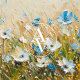 Esta vibrante pintura a óleo captura a beleza serena de um campo no florescimento do cheio. Flores silvestres, azuis e brancas, deliciosas dançam graciosamente em meio a altas gramíneas do ouro, trazidas à vida por bruxos expressivos e texturizados. As tons suaves e pastéis do fundo complementam as vivas pop de cor no primeiro plano, criando um sentido de movimento e tranquilidade. Perfeito para aqueles que amam a arte inspirada na natureza, esta peça traz a essência calmante de um campo de primavera para qualquer sala, oferecendo uma experiência visual refrescante e estimulante.