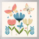 Design original de flores e borboletas brancas em cores azul, laranja e pêssego
