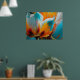 Poster Florescer em Laranja e Azul Turquesa