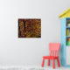 Esta poster apresenta uma adorável design impressionista de uma floresta de faia em cores brilhantes do outono de vermelho, marrom, amarelo e ouro. Alguns troncos castanhos escuros estão espiando pelas folhas.