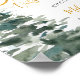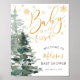 Chá de fraldas de inverno moderno sinal de boas-vindas poster. Este na moda design apresenta uma letra de script de caligrafia, flocos de neve e árvores de floresta de aquarelas. FOLHA DE OURO