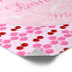 Esta poster apresenta um padrão de flores bonito de cereja rosa, também chamadas Sakura e Japão. São um símbolo de Primavera e são ideais para um Casamento de primavera. Eles são misturados a pares de cerejas vermelhas brilhantes maduras. Há um círculo cor-de-rosa claro com padrões brancos marmoreados que contém texto personalizável para que você possa incluir todos os detalhes importantes.