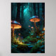 Poster Floresta Encantada com Criaturas Fantásticas e Bri
