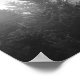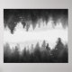 Foto preta e branca espelhada de um nevoeiro que cai sobre a floresta.