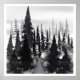 A Mão da Floresta Branca Negra pintou aquarela de árvores verdes em uma montanha em preto e branco.