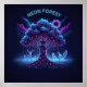 Poster Floresta Neon - Árvore brilhante e Animais Luminos