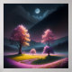 Bem-vindos à Floresta Rosa Aurora, um reino de outro mundo onde árvores exuberantes, como alienígenas, adornadas com folhas rosa vibrantes permanecem em esplendor mesmerizante. Sob o brilho suave da lua, a floresta ganha vida com uma beleza etérea, cercada por árvores distantes e montanhas majestosas. Gerado com ajuda da IA