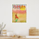 Poster do estilo da "Vintage Divertida" de um surfista indo para o Atlântico ao largo da costa da Flórida. Escolha seu tamanho e papel!