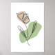 Uma arte em linha de caule de flor solteiro com design abstrato marrom e verde para exibir em qualquer parede da sua casa.
