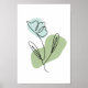 Uma arte em linha de caule de flor solteiro com design abstrato azul e verde para exibir em qualquer parede de sua casa.