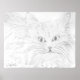 Esboço a lápis de mão livre, de olhos longos, cabelos longos, gatinho para o seu prazer decorativo