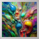 Cores vibrantes se juntam, criando uma composição fluida e dinâmica com formas brilhantes e bulbosas. Os elementos entrelaçados evocam uma sensação de movimento e crescimento orgânico.