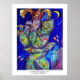 Pintura aquosa colorida colorida, branca e vibrante, em cores vermelho vivo, azul, verde, amarelo-ouro, rosa, fuchsia inspirada no Carnaval de Veneza e Commedia dell'Arte. Um flautista expressivo na noite, luz da lua e um gato azul. Este design legal e artístico também é um belo presente para ocasiões especiais, aniversários, casamentos, natal, feriado, mardi gras, época de carnaval.