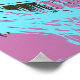 Este trabalho de arte de abstrato mostra pincéis ousados de turquesa, varridos diagonalmente através de uma vívida magenta e de fundo escuro. As texturas largas como tinta criam uma sensação de energia, espontaneidade e movimento. O impressionante contraste entre a turquesa brilhante e os tons magenta profundos acrescenta um sentimento moderno e urbano, fazer a peça perfeita para arte digital, moda ou temas visuais inspirados nas ruas.
