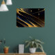 Mergulhe na opulência com esta arte fluida abstrata hipnótica. Ondas de ouro líquido deslizam elegantemente sobre um fundo azul profundo, pontilhado com formas de diamante cintilantes. Ideal para decoração de luxo, presentes corporativos e papéis de parede premium. Sofisticação absoluta em cada detalhe.