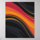 Um desenho abstrato ousado e energético caracterizado por curvas fluentes em tons de laranja, vermelho e preto. As listras dinâmicas de cores quentes criam um sentido de intensidade e movimento, parecido com o movimento do fogo ou da lava derretida. O fundo escuro contrasta fortemente com as matizes brilhantes, aumentando o efeito dramático da composição.