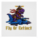 Póster Fly Or Extinct Pixel Art Dinosaur Pilot Fighter Je
