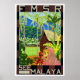 poster de viagens vintage para os Estados Federados Malaios Caminhos de ferro que incentivam o viagem na Malásia Colonial Britânica, atual Malásia