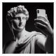 Um busto de mármore branco de um antigo grego que levava selfie com o seu telefone celular