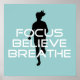 Foco Acredite em Breathe roupa de corrida incluindo T-shirts, camisetas, capas, capuzes, jaquetas de pista, camisetas de manga comprida, e presentes, incluindo canecas, ímãs, botões, sacos de tote, etiquetas de bagagem, relógios de parede, correntes-chave e muito mais com uma corredora negra e design de texto branco. Excelente para qualquer pessoa que adora correr, está treinando ou já dirigiu uma maratona de 5.000, 10.000, ou meia-maratona!