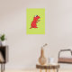 Impressão de poster de dinossauro bonito com uma ilustração colorida de um dinossauro T-Rex vermelho com um fôlego feroz sobre fundo verde. Esta impressão fofa tem cores vivas e é adequada para crianças e para crianças crescidas também. :)