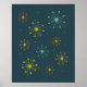 Decorra sua casa com este fabuloso poster de estilo azul escuro com estilo de meio século de fogos de artifício retrorreflectores.