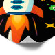 Um foguete retrô brilhante atravessa um céu preto estrelado com alienígenas verdes sorridentes e planetas coloridos para um clima divertido de espaço sideral perfeito para quartos de crianças e salas de aula, usando palavras-chave claras sobre tema, cor e estilo para ajudar na descoberta. Fraseado único e metadados focados alinham-se às diretrizes da Zazzle para evitar tipos de produtos e acúmulo de palavras-chave, maximizando a relevância.