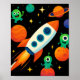 Poster Foguete Espacial Fofo & Arte de Alienígenas