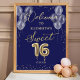 Poster Folha de Ouro Sweet 16 Balões Azul Sinal de Boas-v