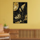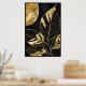 Elevem o vosso decor com esta ilustração botânica luxuosa, com folhas de tinta finamente detalhadas, acentuadas por veias de folha de ouro. Arranjada contra os ricos fundos escuros, traz um glamour refinado e elegância eterno a espaços que buscam arte botânica em folha dourada, decoração de tinta preta luxuosa e impressões elegantes inspirados na natureza.
