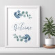 Placa de boas-vindas de eucalipto com caligrafia elegante e folhas de eucalipto. Design botânico simples e discreto com folhagem de aquarela e verde em tons de azul cinza verde poeirado. Perfeito para tema de eucalipto e verde botânico para casamento, chá de noiva, chá de bebê, etc. Por favor, explore minha loja - coleção de eucalipto poeirento - para itens correspondentes.