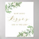 Pôster de Folhagem em Aquarela e Flores Brancas Quantos Beijos | Pôster 'Quantos beijos?' com ilustrações em aquarela de folhagem e flores brancas com escrita elegante em dourado. Jogo de chuveiro divertido e elegante, perfeito para chuveiros de noiva de primavera e chuveiros de bebê. Itens correspondentes estão disponíveis.